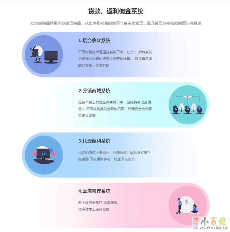 3.云仓管理系统:货、款可放在云仓库存,想什么时候提货都可以,也可以通过招代理的方式转移库存。