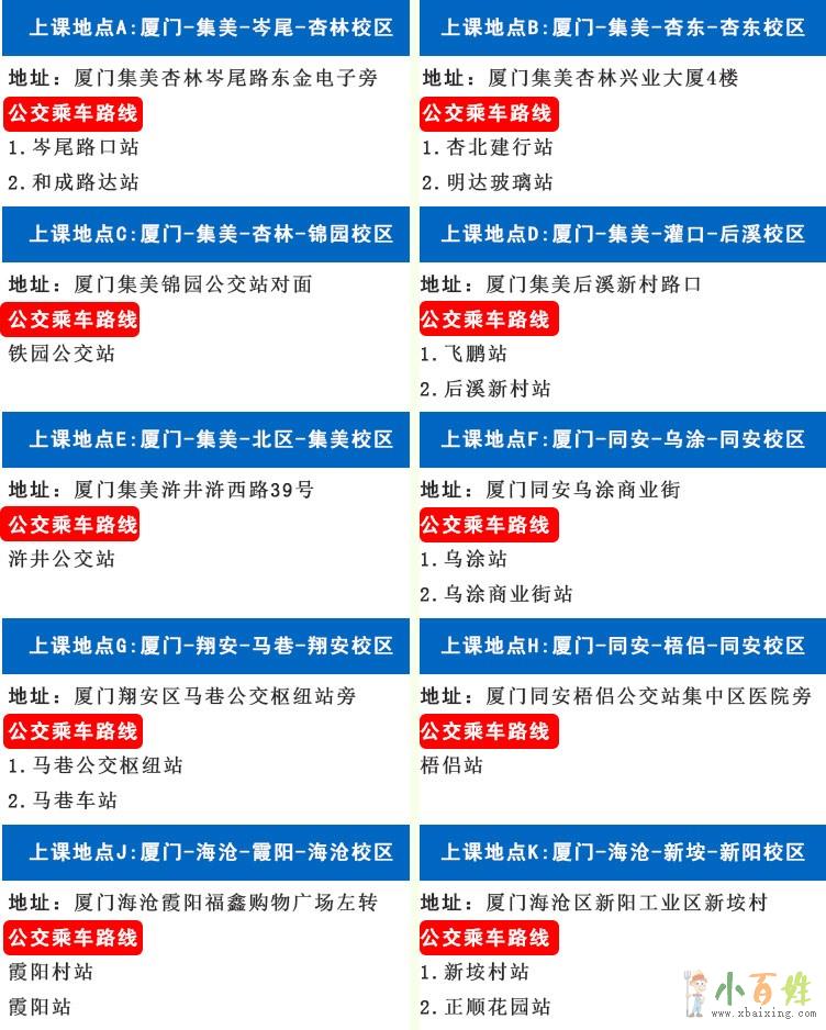 集美,杏林,同安,海沧,北站,翔安均有校区学员可就近安排学习