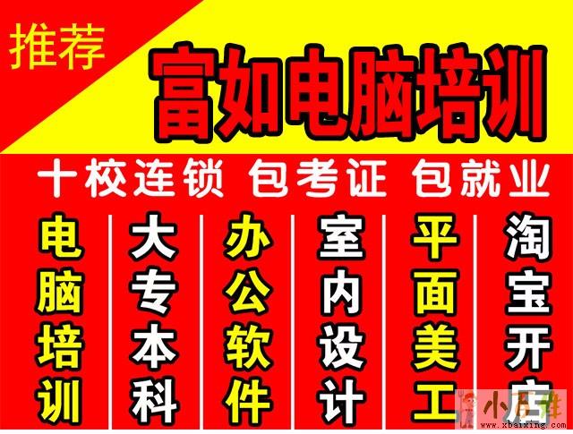 富如教育培训中心开设有:电脑、办公文秘、电脑基础知识、office办公软件、淘宝美工、平面设计、广告设计、ps培训、CorelDraw、名片设计欢迎www.xbaixing.com。室内设计、装潢设计、装饰设计、CAD培训班、3DMAX、CAD建筑设计绘图。学历提升等